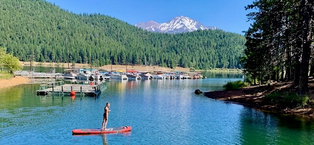 Siskiyou Lake, CA, is an unforgettable lake surrounded by dense forest and a striking view of Mount Shasta. The mirror-like water offers reflections of the surreal surroundings, making for a beautiful day on your paddleboard. It is one of our favorite places to go paddle boarding because there is something for everyone at Lake Siskiyou. While the adults will enjoy exploring the numerous inlets and crannies around the lake, the kids (and kids at heart) will love the splash zone at the Lake Siskiyou Camp Resort. You don’t have to be staying there to climb on the Ninja Warrior style floating challenges..